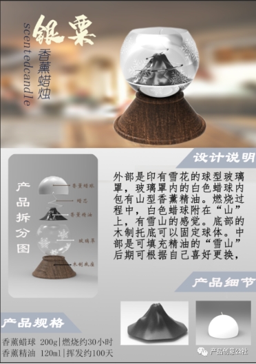 三等奖作品:《银粟香薰蜡烛》