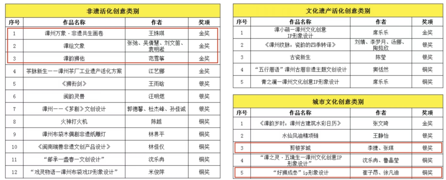 随着赛事结果正式揭晓,天财艺院学生的努力终获丰硕回报 —— 三项金奖将、一项银奖、一项铜奖的荣誉,获得奖金4万余元。这既是对团队创意设计能力的高度认可,也是对“文化赋能产业”理念的生动践行。这些获奖作品既深度还原了漳州文化的独特魅力,又融入了符合当代审美的创新表达,为非遗活化提供了鲜活范例。